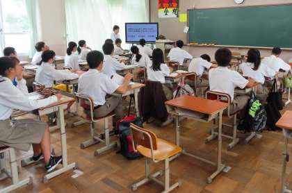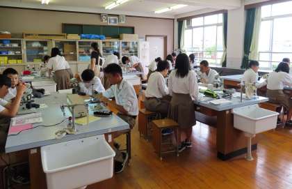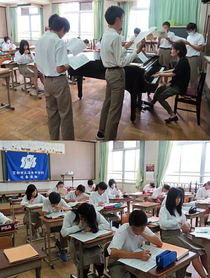 2限の授業の様子です。上から、2組 社会、3組 音楽、4組 理科 です。