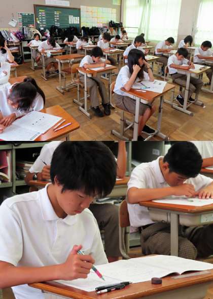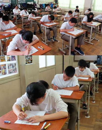 本日の5,6限は、昨日に引き続き2年生で学習確認プログラムです。5限の理科のテストの様子です。