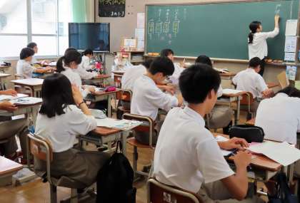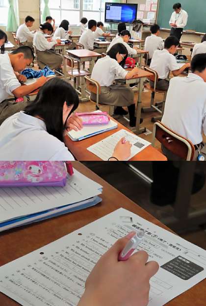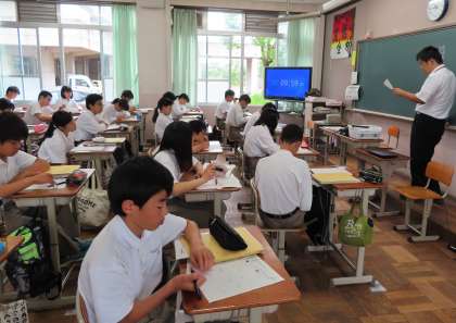 1限の授業の様子です。上から、2組 数学、3組 国語、4組 英語 です。