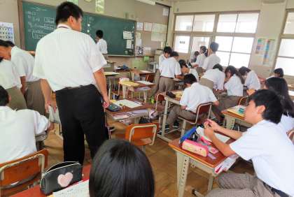 2限の授業の様子です。上から、2組 英語、3組 数学、4組 理科 です。