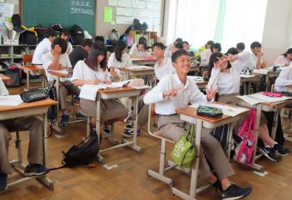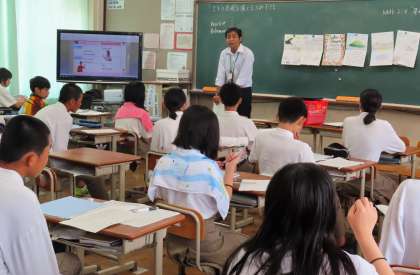 4限の授業の様子です。上から、2組 社会、3組 理科、4組 英語 です。