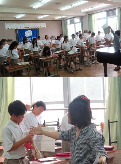 2限の授業の様子です。上から、2組 社会、3組 数学、4組 音楽 です。