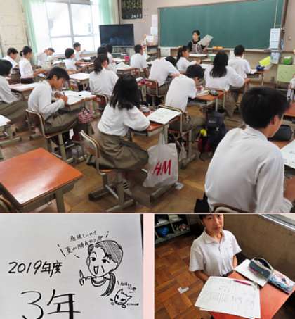 2限の授業の様子です。上から、2組 家庭、3組 理科、4組 英語 です。