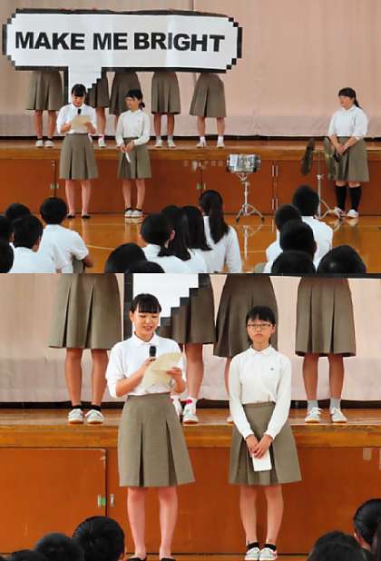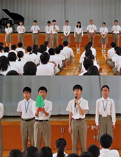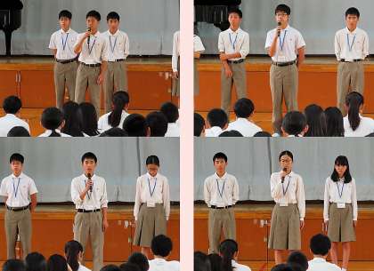 生徒会からの話の様子です。また、学校祭実行委員会からは、スローガンが発表されました。