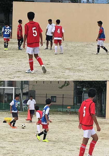 サッカー部の様子です。サッカー部は、新チームから大淀中学校との合同チームで新人戦に出場することになりました。今日は大淀中学校での合同練習の様子です。