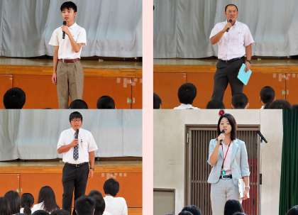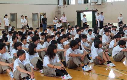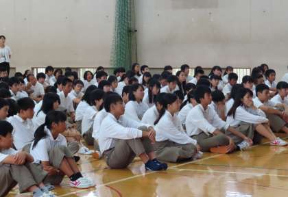 2学期初めの集会(始業式)の様子です。