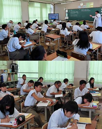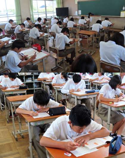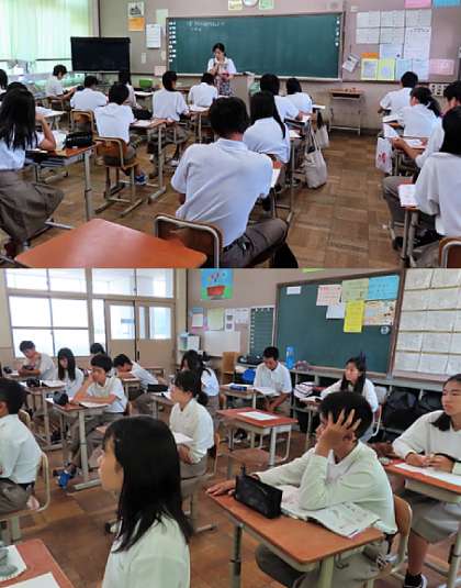 2限の授業の様子です。上から、2組 数学、3組 国語、4組 理科 です。