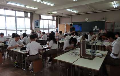 2限の授業の様子です。上から、2組 美術、3組 英語、4組 数学 です。