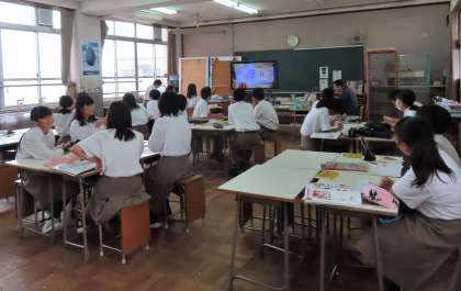 4限の授業の様子です。上から、2組 美術、3組 英語、4組 理科 です。