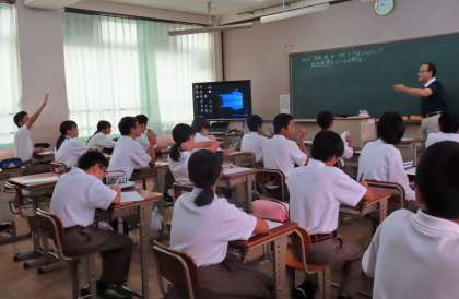 2限の授業の様子です。上から、2組 社会、3組 数学、4組 音楽 です。