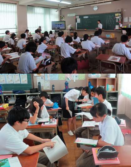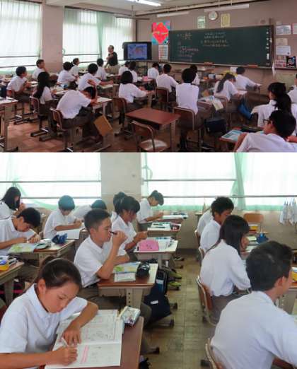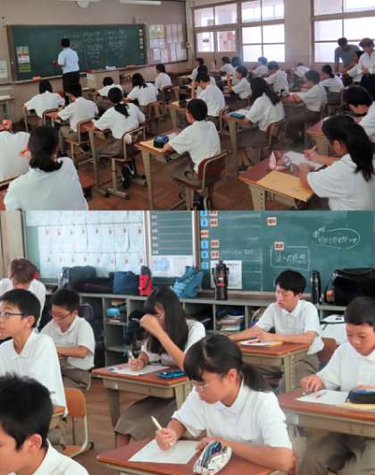 3限の授業の様子です。上から、2組 数学、3組 社会、4組 英語 です。