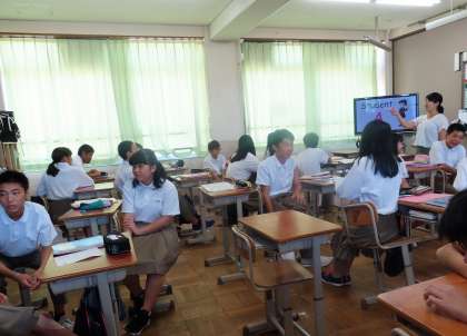 2限の授業の様子です。上から、2組 英語、3組 音楽、4組 数学 です。