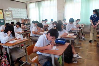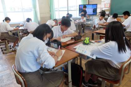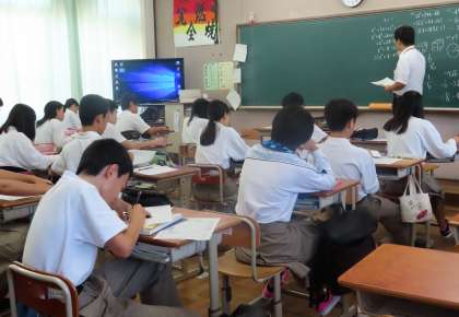 2限の授業の様子です。上から、2組 数学、3組 理科、4組 社会 です。