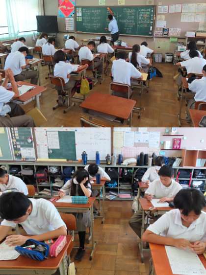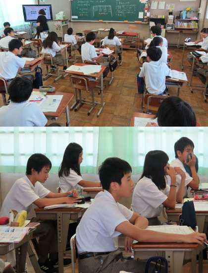 2限の授業の様子です。上から、2組 技術、3組 数学、4組 家庭 です。