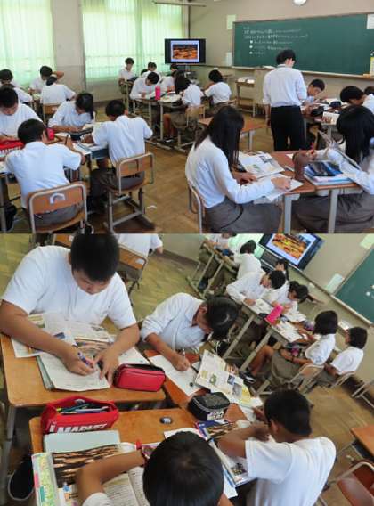 2限の授業の様子です。上から、2組 数学、3組 社会、4組 国語 です。