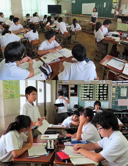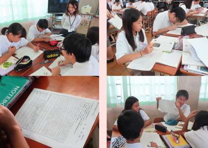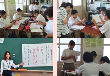本日の5限、教育実習生の研究授業が1年4組で行われました。国語の授業の様子です。