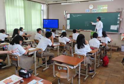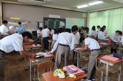 4限の授業の様子です。上から、2組 数学、3組 英語、4組 家庭 です。