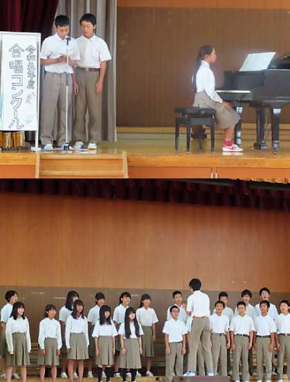 5限の1年生の合唱コンクールリハーサルの様子です。