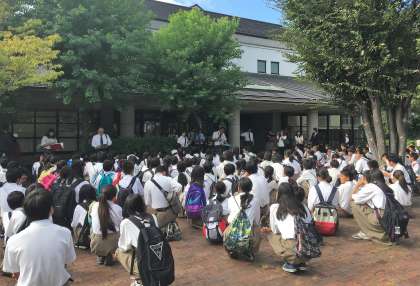 朝の集合の様子です。この後、令和元年度の学校祭・合唱コンクールが始まります。