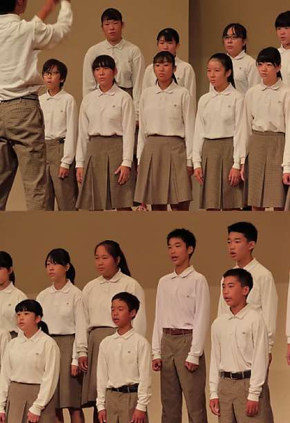 今日は3つのパートのかけあいやハーモニーを大切に歌うことを意識し、全員が一丸となって歌いたいと思います。それでは聴いてください。
