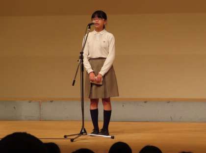 「みなさん、今日の合唱コンクールはどうでしたか。自分の力を精一杯発揮できましたか。金賞をとったクラスも、そうでないクラスも、団結して心をひとつにして歌うことができたと思います。