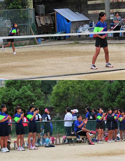 昨日(9月22日)、ソフトテニス部の団体予選が藤森中学校で、4校のリーグ戦で行われました。第1試合は藤森中学校と対戦し、2−1で勝利しました。