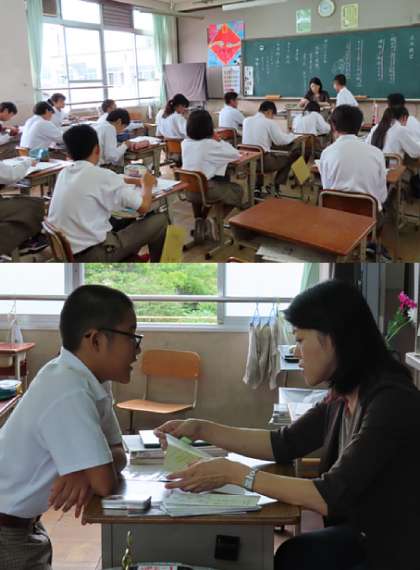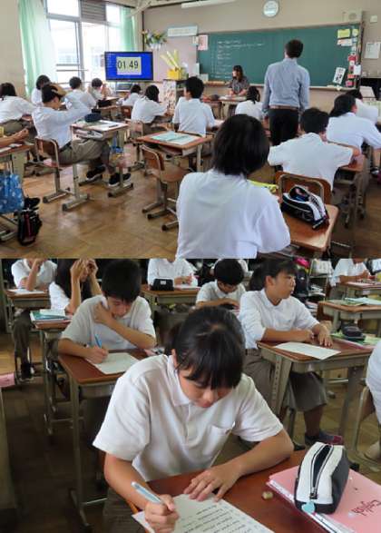 1限の授業の様子です。上から、2組 理科、3組 国語、4組 英語 です。