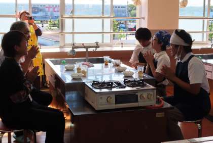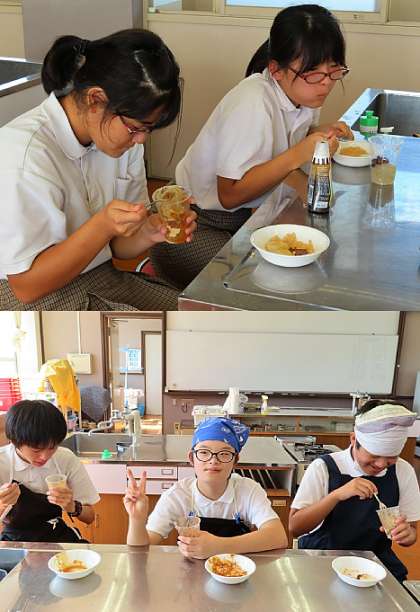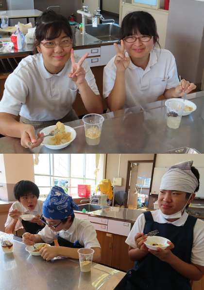 調理実習の様子です。わらび餅ができあがり、美味しそうに食べていました。