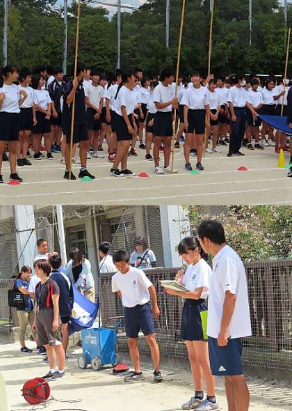 本日、テスト後に体育大会の予行が行われました。全員で行う入退場や各競技(体育大会が初めての1年生)を中心に行われました。
