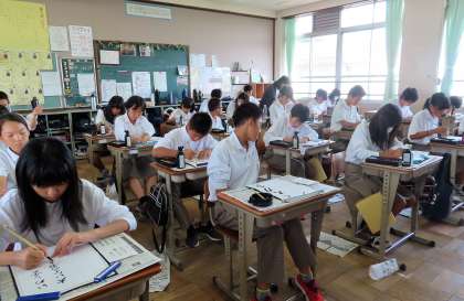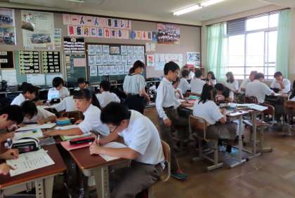 1限の授業の様子です。上から、2組 理科、3組 国語、4組 英語 です。