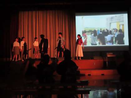 学習発表会前日の取組の様子です。舞台リハーサルの様子です。