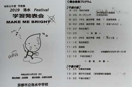 おはようございます。本日、2019年度の学習発表会(舞台発表・展示鑑賞)が、9時より行われます。生徒登校は、8時35分予鈴です。