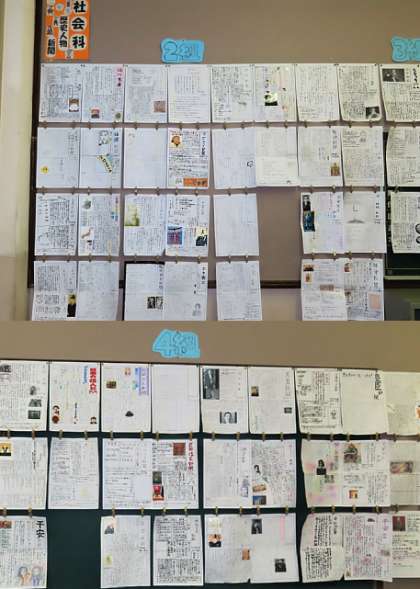 社会科「1年『国調べ』」「2年『歴史上の人物調べ』」、数学科「3年『数学レポート』」です。