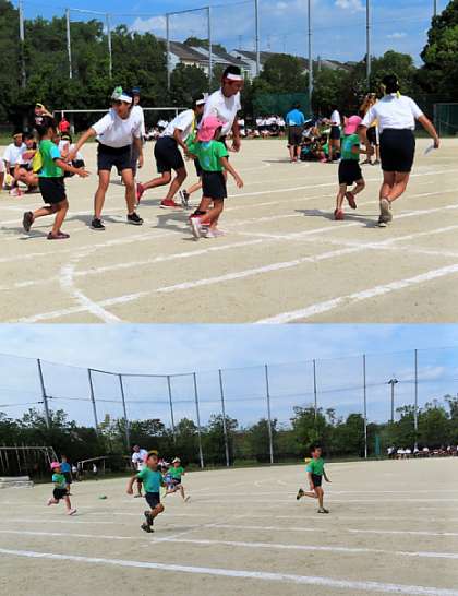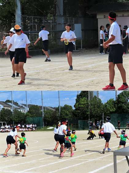横大路保育園の園児さんにきていただき、協議に参加してもらいました。園児さんと中学生が手をつなぎゴールを目指します。