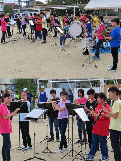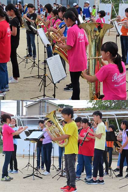 本日(10月6日)、吹奏楽部は横大路学区民運動会に参加しました。入場行進の演奏後、3曲の演奏をさせて頂きました。