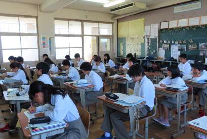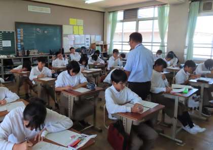 3限の授業の様子です。上から、2組 数学、3組 社会、4組 英語 です。