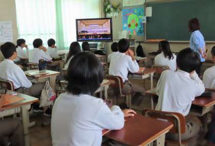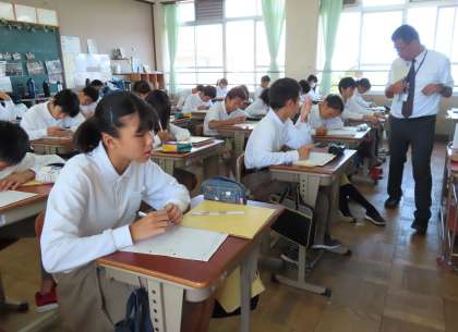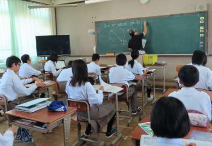 2限の授業の様子です。上から、2組 社会、3組 数学、4組 音楽 です。