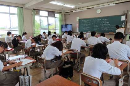1限の授業の様子です。上から、2組 社会、3組 英語、4組 国語 です。