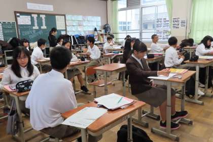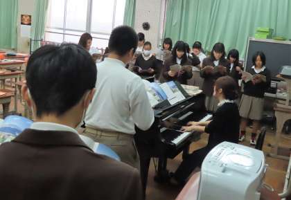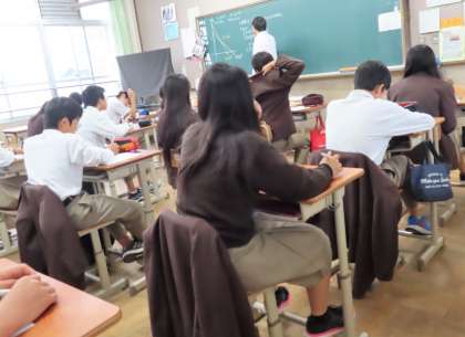 2限の授業の様子です。上から、2組 英語、3組 音楽、4組 数学 です。