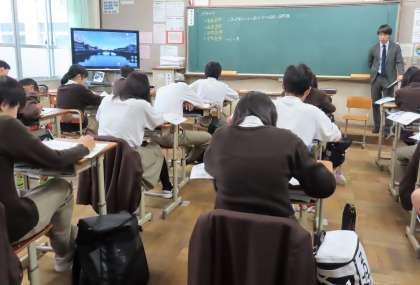 2限の授業の様子です。上から、2組 数学、3組 理科、4組 社会 です。