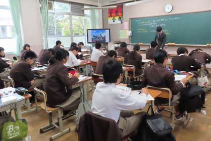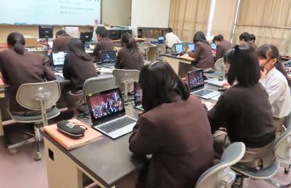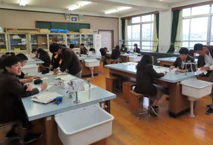 2限の授業の様子です。上から、2組 社会、3組 音楽、4組 理科 です。