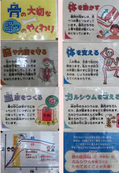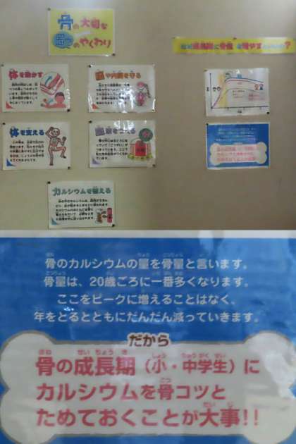 保健室前の掲示物です。成長期に骨量を増やすことが大切さについてのものです。また、ご覧になってください。