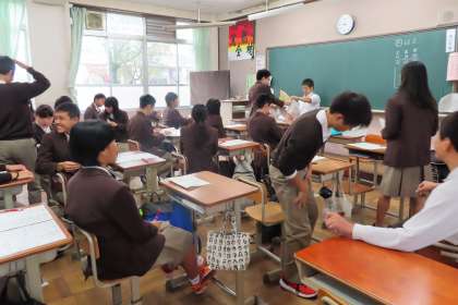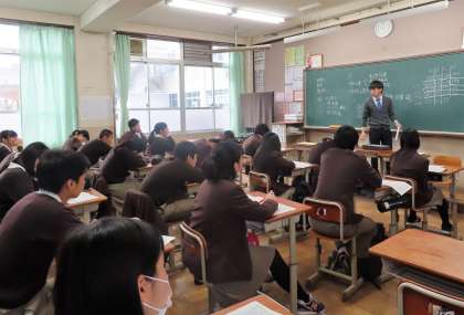 1限の授業の様子です。上から、2組 数学、3組 英語、4組 社会 です。