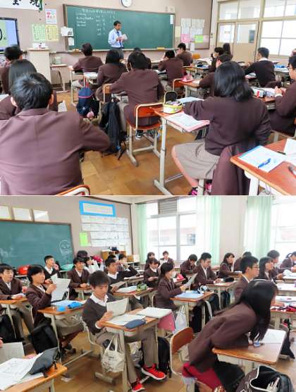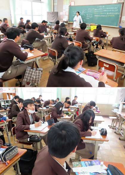 2限の授業の様子です。上から、2組 英語、3組 数学、4組 理科 です。