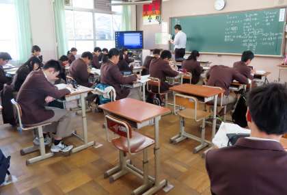 2限の授業の様子です。上から、2組 数学、3組 理科、4組 社会 です。
