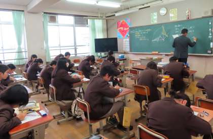 2限の授業の様子です。上から、2組 技術、3組 数学、4組 家庭 です。