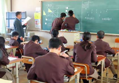 3限の授業の様子です。上から、2組 数学、3組 社会、4組 英語 です。