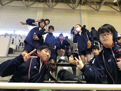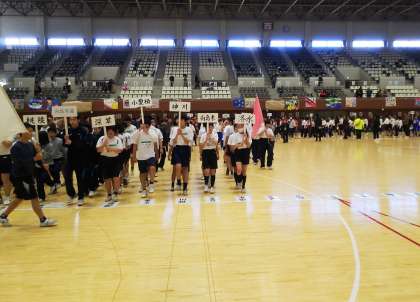 本日、1組のみんなは、島津アリーナで行われる合同運動会に参加します。会場に到着し、開会式前の様子です。