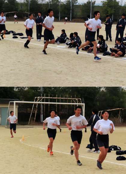 3限の体育の授業の様子です。マラソン大会に向けて持久走が始まっています。