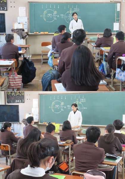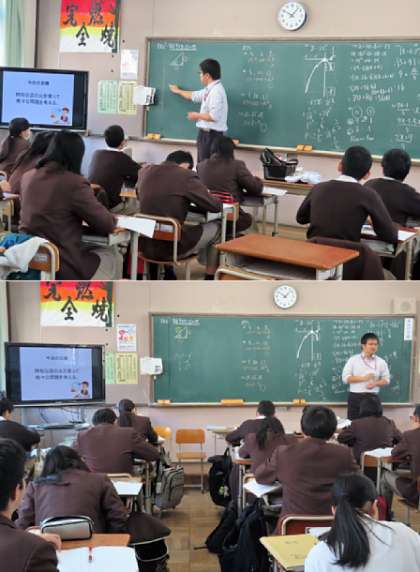 2限の授業の様子です。上から、2組 数学、3組 理科、4組 社会 です。